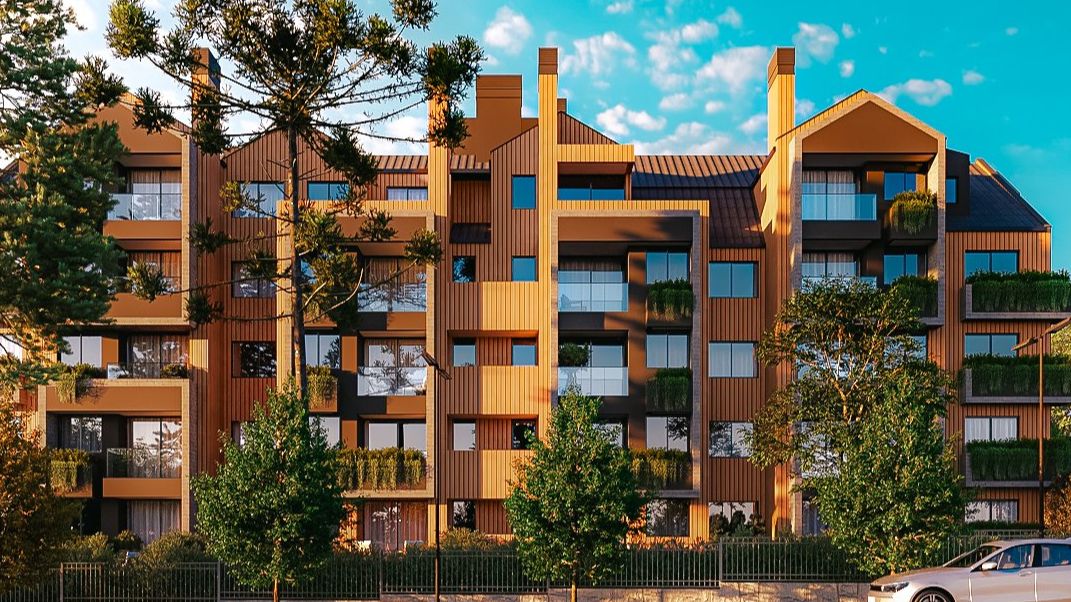 Com planta moderna e bem distribuída, o apartamento possui dois dormitórios, ambos suítes, um lavabo, além de uma espaçosa sala de estar e jantar integradas. A cozinha conta com churrasqueira e espera para lareira, tornando o ambiente ainda mais acolhedor e funcional. A varanda oferece uma vista agradável e complementa o espaço social.