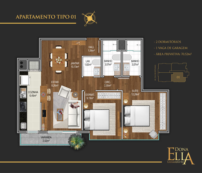 Apartamentos de alto padrão, com excelente localização que oferecem praticidade, conforto e bem estar. Um projeto moderno, de estilo marcante que privilegia o que Gramado tem de melhor qualidade de vida